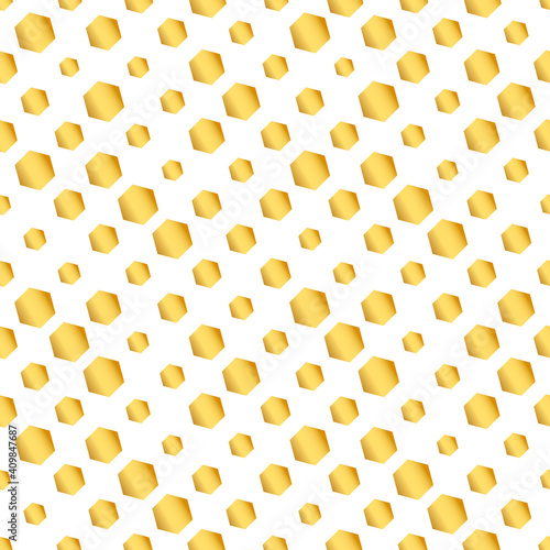 Seamless pattern with color honeycomb shapes on white background. Template texture for invitation, poster, card, banner, announcements and others. Vector illustration.