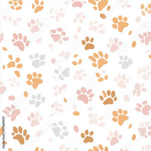 Seamless Pattern with Colorful Pet Paw Prints on White Background
