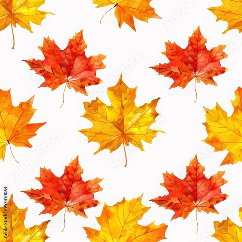Seamless pattern with colourful autumn oak, maple leaves on white background. Perfect for wallpaper, gift paper, pattern fills, web page background, autumn greeting cards, autumn background