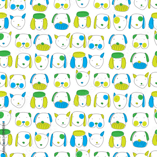 Seamless pattern with cute different kinds of dogs
