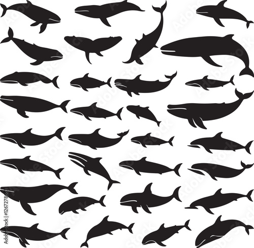 fish, silhouette, vector, sea, animal, bird, pattern, illustration, nature, seamless, shark, design, art, water, ocean, wallpaper, dolphin, flying, wildlife, underwater, aquarium, animal, marin, black, river