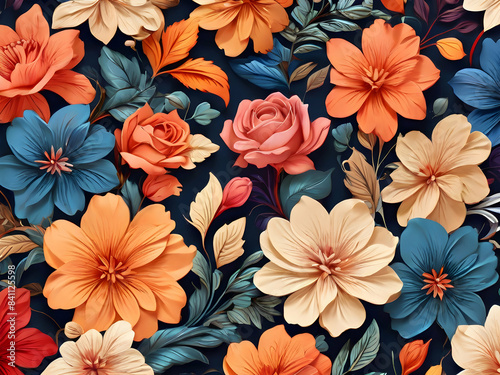 seamless pattern with flowers design, decoration, nature, summer, spring, art, illustration, flowers, textile, Ai generated