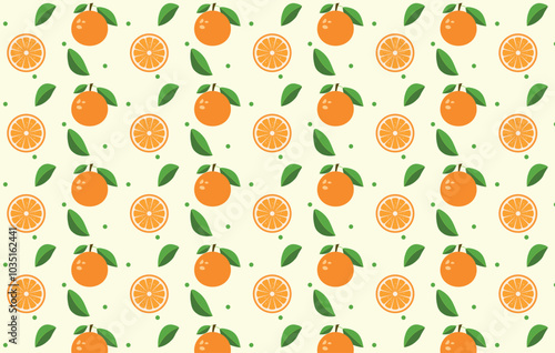 Seamless pattern with fresh orange fruits. Vector orange slices citrus repeat pattern for decoration and print. Citrus repetition pattern