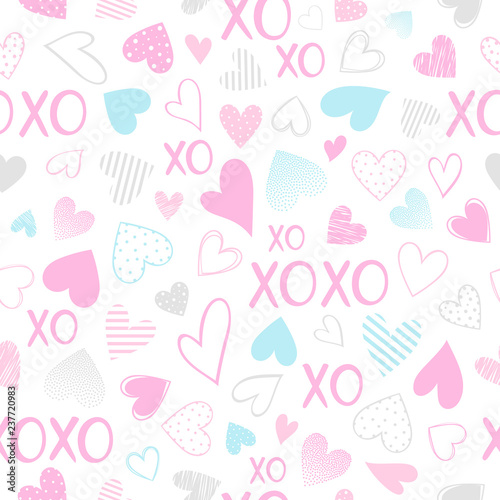 Seamless pattern with hearts and lettering.Romantic illustration perfect for design greeting cards, prints, flyers,cards,holiday invitations and more. Vector Valentines Day card.