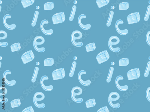 Seamless pattern with ice cubes and the inscription Ice. Vector illustration of a refreshing, chilling background ideal for textiles, wallpapers, web design, wrapping