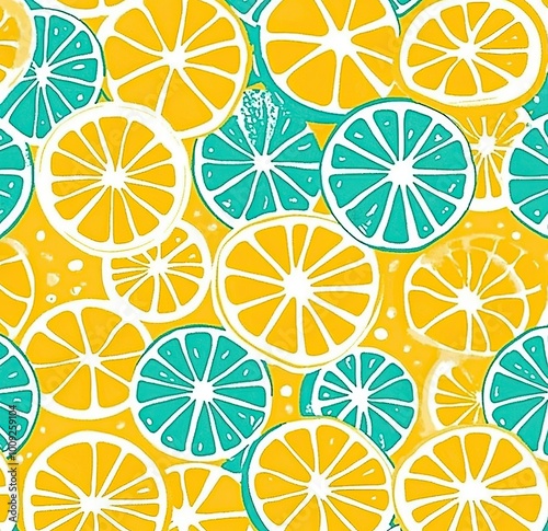 seamless pattern, lime, citrus fruit, yellow, green, pattern, summer, tropical, fruit, background, texture, design, wallpaper, textile, fabric, print, graphic, vector, illustration, digital, art, digital artwork, abstract, colourful, bright, vibrant, juicy, refreshing, healthy, nature, food, fresh, organic, diet, lifestyle, sunshine, happiness, joy, happy, cheerful, cute, doodle, hand-drawn, vignetting