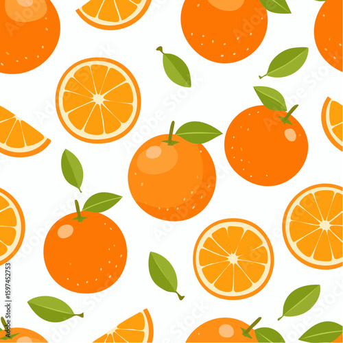 Seamless pattern with oranges. Trendy summer background. Vector bright print for fabric or wallpaper.