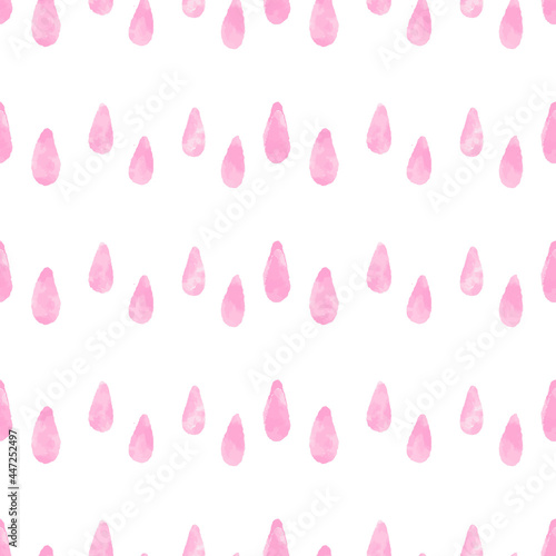 Seamless pattern with pink watercolor rain drops. Vector illustration light background. Gradient textured drops on white backdrop. Textile design.