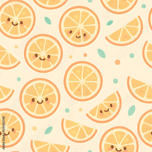Seamless pattern with Slicesi Orange in a cute and kawaii style
