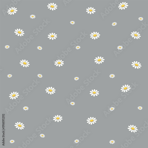 Seamless pattern with small white daisies scattered on transparent background. Minimal floral repeat design perfect for fabric, wrapping paper, packaging, wallpaper, scrapbooking, textile prints