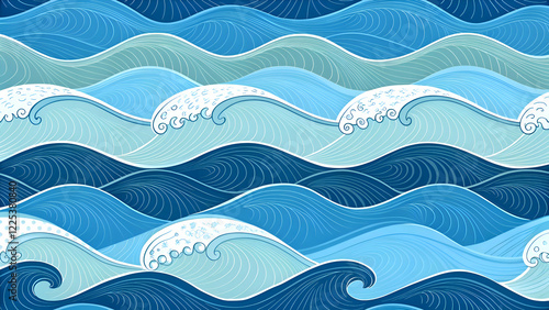 pattern, water, sea, wave, wave, design, illustration, seamless, ocean, wallpaper, blue, curve, art, texture, colours, line, liquid, concept, element, nature, banner, decoration