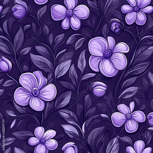 Seamless Purple Floral Pattern with Abstract Leaves - Decorative Design
