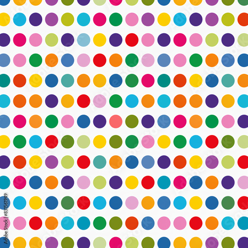 Seamless rainbow colored small polka dot pattern on white background.