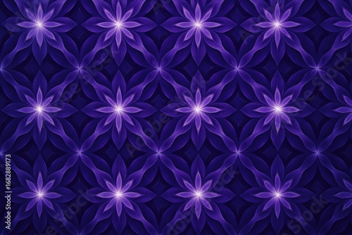 purple, floral, pattern, seamless, repeating, geometric, aglow, glowing, flower, abstract, background, texture, design, symmetric, digital artwork, art, ornamental, decorative, elegant, modern, dark, indigo, violet, bloom, blossom, nature, organic, stylised, graphic, illustration, surface, wallpaper, fabric, textile, print, energy, light, bright, high-coloured, intricate, detailed, artistic, creative, ornamental pattern