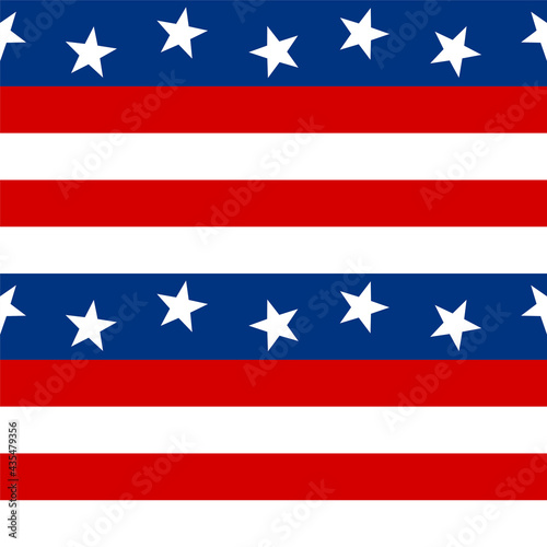 Seamless repeating vector pattern with stars and stripes for national USA holiday Independence day of July 4th. Traditional colors of american flag. Simple texture for memorial day in United States.