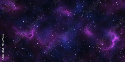 Seamless space texture background. Stars in the night sky with purple pink and blue nebula. A high resolution astrology or astronomy backdrop pattern.