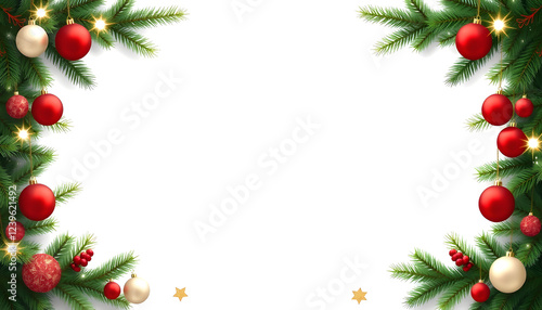 seamless, vector, decoration, isolated, white, christmas, tree, frame, garland, ornament, highlight