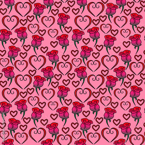 Seamless vector pattern of hearts and roses