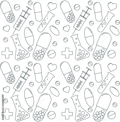 pattern, vector, medicine, pill, seamless, set, doodle, design, drawing, illustration, symbol, icon, abstract, business, signs, white, paper, art, texture, vignetting, hand, isolated, drawn, background, collection, drug, element, fabric, health, disease, line, linear, thin, pharmaceutical, pharmacy, silhouette, textile, flask