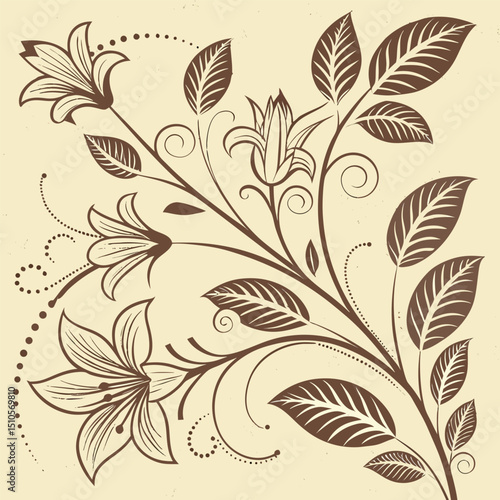 seamless, vintage, botanical, pattern, texture, aged, paper, flower, leaf, floral, plant, background, design, retro, antique, illustration, graphic, repeating, wallpaper, fabric, print, cardboard box