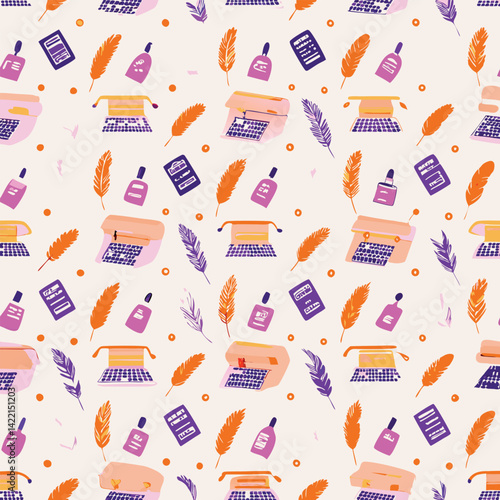 Seamless Vintage Pastel Typewriters and Letters Pattern