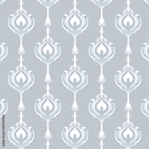 Seamless white and gray lotus flower pattern for use on bedclothes, tablecloths, oilcloths, or other textile items
