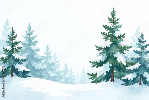 seamless, winter, snow, pattern, christmas, card, invitation, made, watercolor, spruce, conifer, tree, white, forest