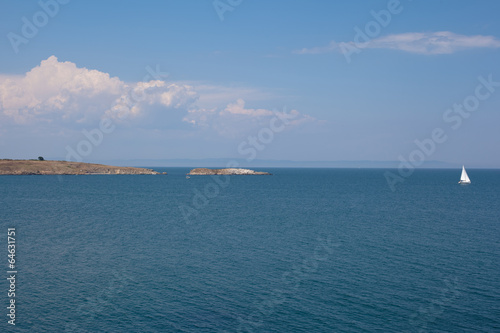 island, sea, bulgaria, europa, blue, sky, horizontal, brown, yellow, summer, white, wave, green, resort, small, nature, day, boat, seascape, sail, yacht, cloud