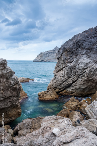 power, dramatic, outdoors, crimea, abstract, stone, landscape, travel, blue, nature, seascape, rock, wave, sea, background, ocean, coast, water, coastline, sky, view, beautiful, scenic, stone, beach, shore, vacation, summer, rocky, black sea, open