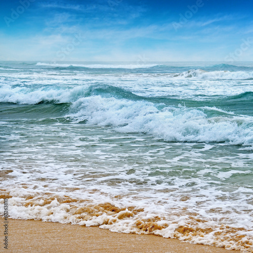 seascape, sand beach and blue sky