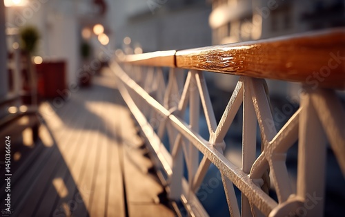 railing, wood, sunlight, promenade, deck, white, metal, design, pattern, abstract, architecture, construction, exterior, geometric, fence, barrier, safety, structure, building, detail, line, shadow, outdoors, vintage, old, textured, closeup, nautical, ship, boat, vessel, transport, summer, vacation, travel, tour tourism, nobody, day, sunny, bright, shiny, weathered, surface, perspective, sharpened, blur, background, artistic