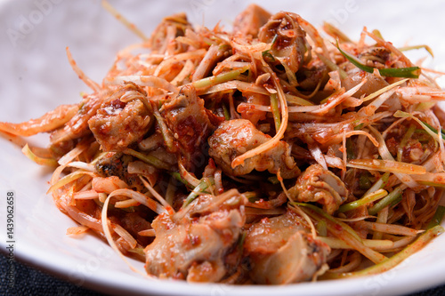 sea snail, seasoned, vegetable, seafood, seafood, marin, delicacy, spicey, savoury, chewy, fresh, healthy, protein, side dish, traditional, fermented, marinated, garnish, texture, favor, nourishment, culinary, sugar, vinegar, sour, sweet, delicious