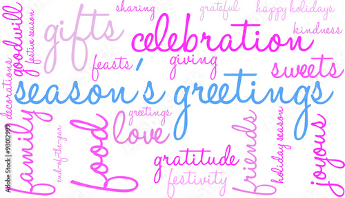 Season's Greetings word cloud on a white background.