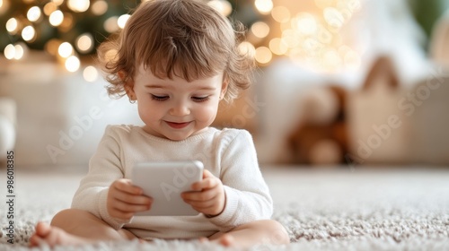 toddler, content, smartphone, sitting, warm, festive, rug, decor, technology, children, happy, digital, modern, exploration, 21st century, cosy, holiday, home, engaging, interaction, cheerful, innocence, joyful, bonding, leisure, lifestyle, family, parenting, curiosity, communication, celebration, surrounded, calm, indoor, secure, comfort, light, affectionate, calmness, play, scene, atmosphere