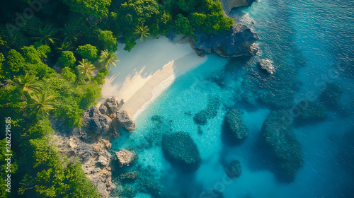 tropical beach, paradise, aerial view, sandy shore, natural beauty, beach vacation, ocean view, palm tree, turquoise water, blue skies, summer getaway