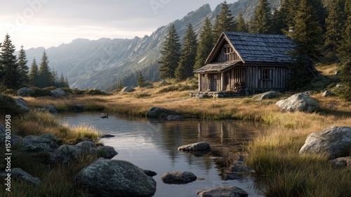 cabin, mountain, lake, landscape, nature, solitude, idylli, scenery, tranquil, wilderness, rustic, alpine, remote, peaceful, environment, serenity, exterior, house, building, tour tourism, destination, travel, vacation, adventure, exploration, highland, timberland, countryside, bungalow, retreat, panorama, outdoors, europa, mountain, sky, tree, forest, wood, water, stone