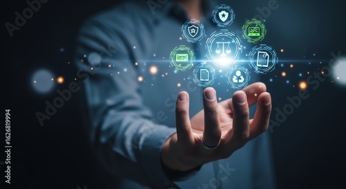 security, law, compliance, icon, datum, protection, privacy, risk, management, technology, ethical, future, hand, holding, concept, governance, regulation, policy, cyberspace, network, information, safe, secure, system, software, online, legal, justice, scale, shield, integrity, confidentiality, transparency, assurance, control, auditing, standard, business, innovation, strategy, solution, trust