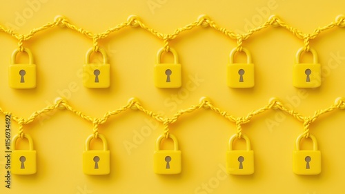 security, network, padlock, lock, chain, connected, digital, safety, cyber, protection, online, cyberspace, datum, privacy, secure, connection, technology, system, infrastructure, safeguard, defense, shield, minimalism, simple, design, concept, abstract, illustration, yellow