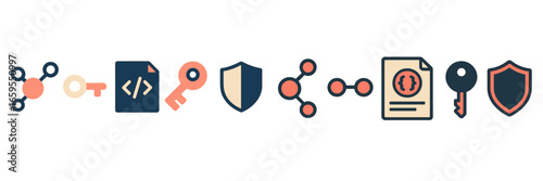 security, datum, icon, set, minimalist, flat, design, icon, key, shield, code, network, connection, digital, technology, access, protection, information, symbol, node, privacy, database, system