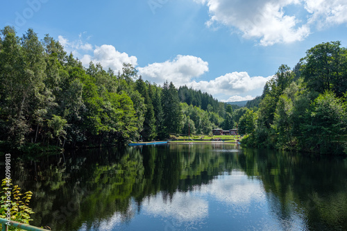 see, water, countryside, heaven, nature, flux, forest, tree, summer, cloud, outdoors, duck pond, scene, mirror, assured, beauty, view, blue, travel, mountain, cane