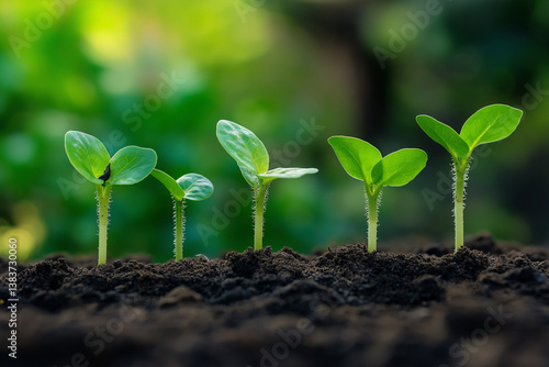 Seedlings Growth Stages Natures Green Sprouts in Soil