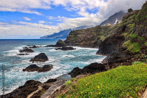 sea, coast, ocean, beach, water, landscape, sky, nature, coastline, blue, wave, rock, shore, rock, cliff, summer, travel, wave, bay, sand, beautiful, seascape, island, view, atlantic, portugal, church, mountain, hill, pool, northern, volcanic, scenic, lava, lagoon, cloud, cloudy, wind, stone, black, rocky, splash