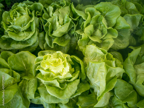 Selective focus of fresh organic vegetable grown using aquaponic or hydroponic farming.