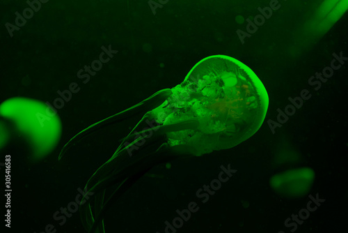 selective, sharpened, green, neon, light, black, background, nobody, shape, illuminated, nature, water, natural, dark, animal, wildlife, tropical, illumination, darkness, glow, glowing, marin, aquarium, underwater, aquatic, lighting, semitransparent, fauna, bokeh, tentacle, copy space, selective focus, no people