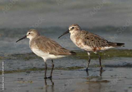 Selective focus on the back Curlew Sandpiper at Busaiteen coast of Bahrain