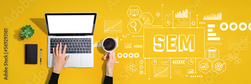 SEM - Search Engine Marketing theme with person using a laptop computer
