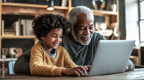 grandfather, grandson, grandfather, senior, generation, family, man, laptop, black, african american, people, education, elderly, old age, retired, homework, boy, retro, nostalgia, classic, online, contraption, traditional, gathering, old school, heritage, close, sentimental, aged, old-fashioned, human relationships, home, children, grandparent, children, childhood, study, help, support, free time, teaching, instructing, concentration, indoor, together, happy
