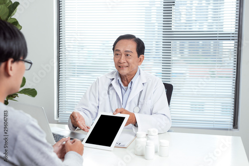 Senior doctor consults young patient