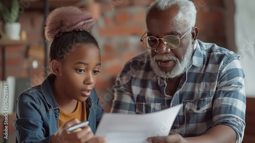 tutoring, education, grandfather, granddaughter, home, learning, senior, family, teaching, children, girl, reading, guidance, support, bonding, human relationships, studying, help, assistance, cognition, sharpened, attentive, understanding, caring, wisdom, elder, multicultural, diverse, connection, affectionate, patient, nurturing, engaged, educational, literacy, development, love, generational