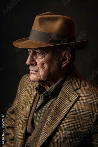 portrait, senior, man, fedora, tweed, blazer, sophistication, studio, fashion, elegance, confidence, classic, vintage, style, charisma, mature, personality, charme, accessory, tailored, timeless, distinguished, smart, cultured, gentleman, heritage, relaxation, aesthetic, warmth, demeanor, grace, refinement, expression, character, photo, composition, background, detail, mood, lighting, life events, wisdom, narrative, storytelling, attire, allure, identity, trend, chic